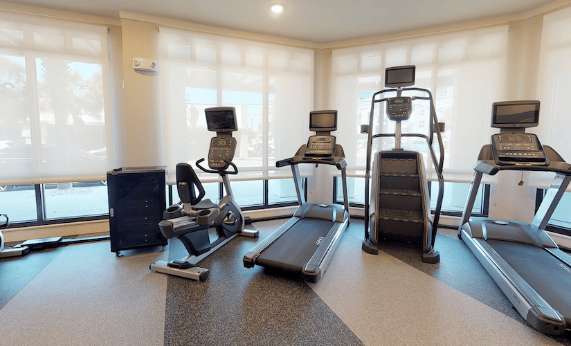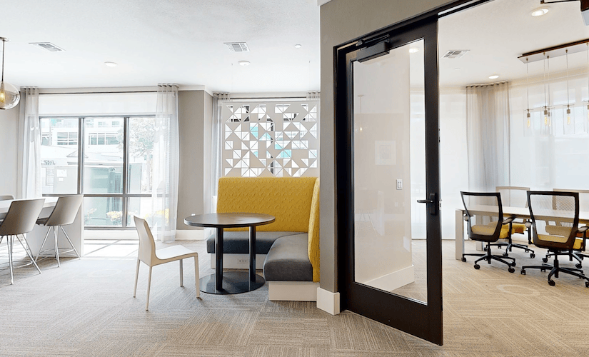 large bedroom window provides ample natural lighting bathroom with frameless glass enclosed walk-in shower large Co-working space with ample lighting On-site spa with massage rooms and saunas large ceiling fans and recessed lighting throughout State-of-the-art fitness center